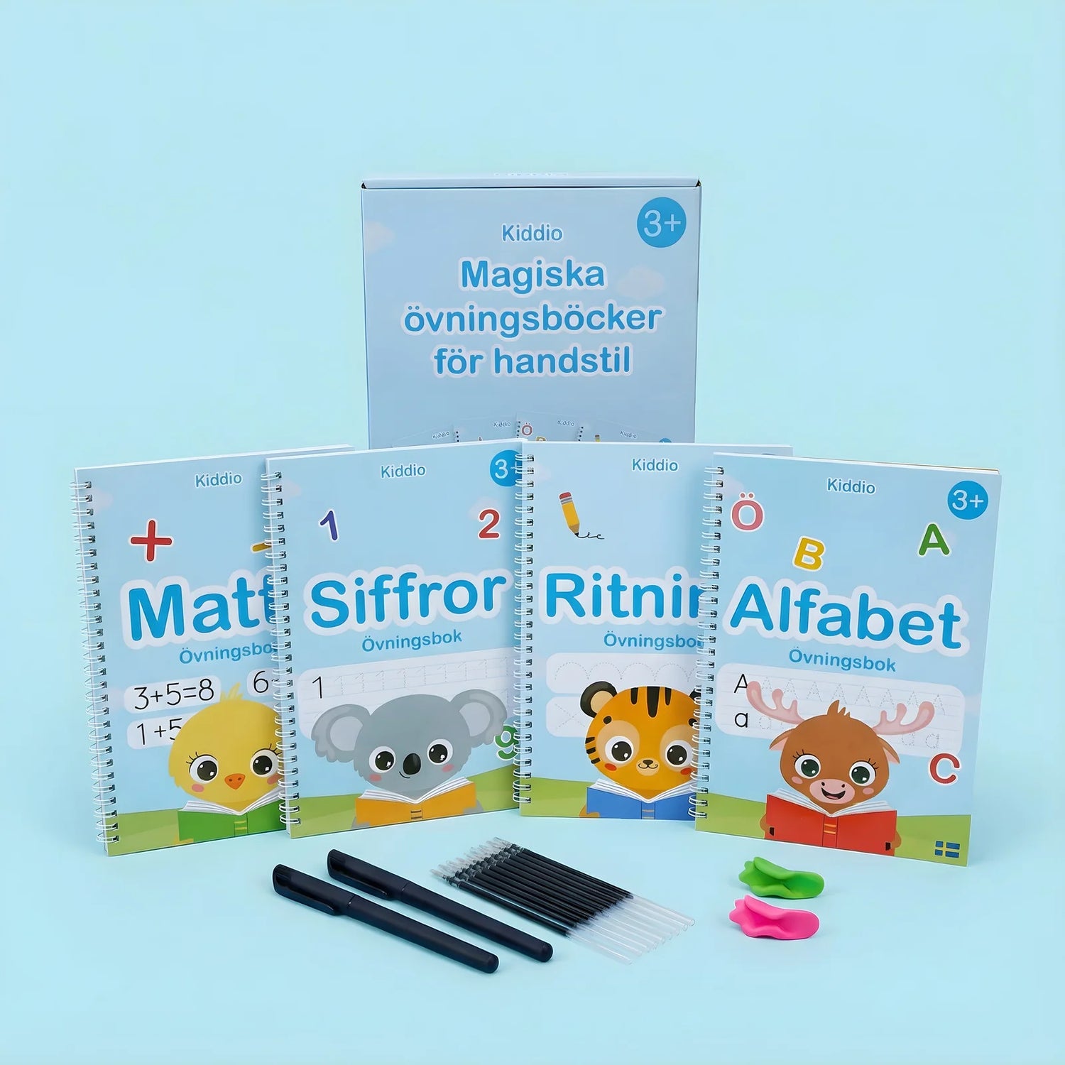 Med detta återanvändbara övningskit för handskrift kan ditt barn öva på att skriva om och om igen utan att du behöver spendera pengar på att köpa nya skrivböcker.